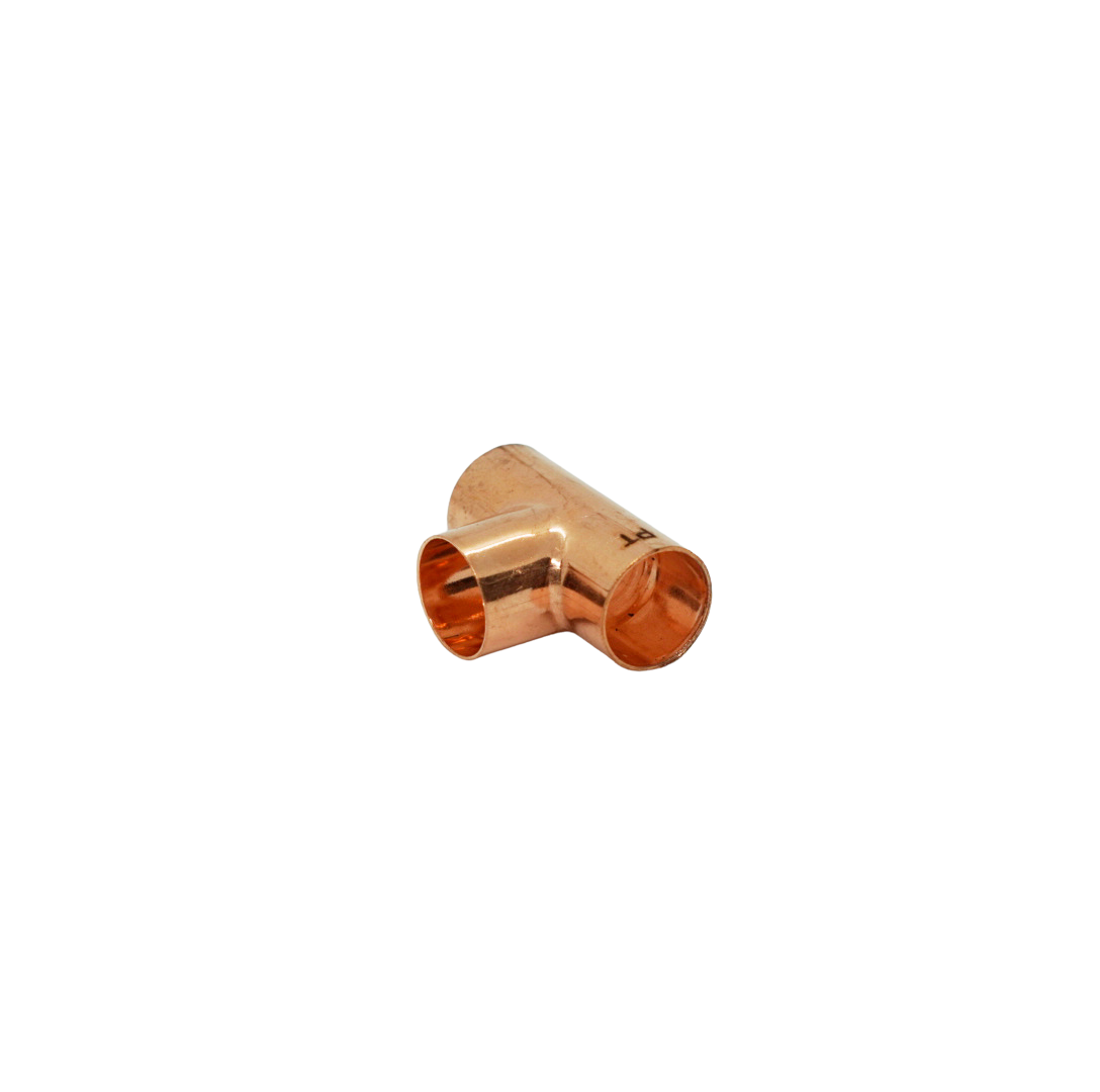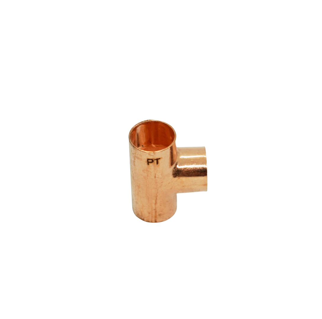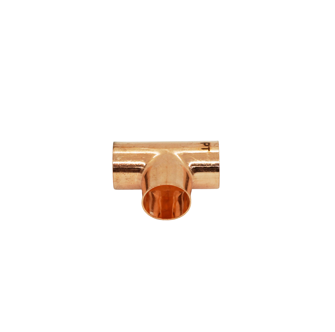 Teul egal din cupru îți permite să creezi o ramificație în rețeaua de țevi, conectând trei segmente la un unghi de 90°. Îți permite să adaugi o ieșire laterală într-un traseu de țevi din cupru, menținând continuitatea fluxului și o distribuție eficientă în sistemul termic sau sanitar.