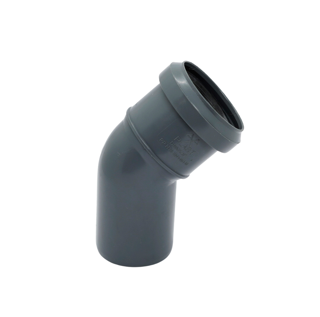 Cotul de 45° din polipropilenă (PP) este printre cele mai utilizate fitinguri în sistemele de canalizare. Îți permite să schimbi direcția traseului într-un mod eficient și echilibrat, fără a afecta debitul.