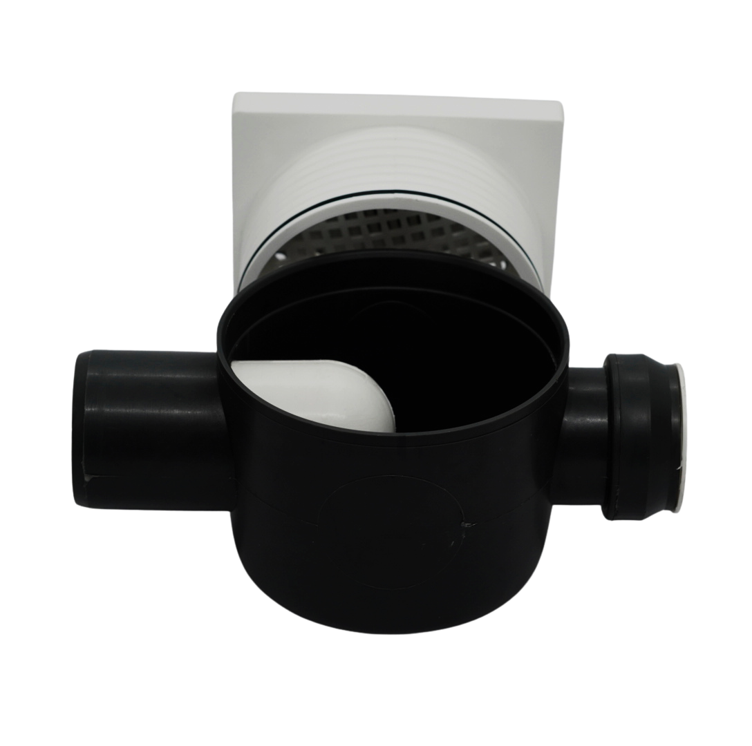 Grilajul superior permite scurgerea rapidă, iar designul intern previne revenirea mirosurilor neplăcute.