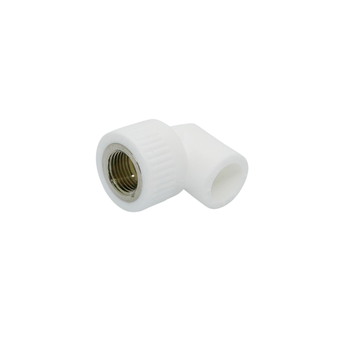Cotul PPR cu filet metalic interior la 90° îți permite să conectezi țeava PPR la robineți, distribuitoare sau alte componente filetate, asigurând o trecere unghiulară fermă și durabilă.