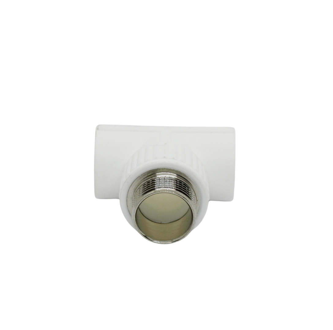 Dacă ai nevoie să conectezi două tronsoane din țeavă PPR și un element cu filet exterior, acest tip de teu este exact ce îți trebuie. Permite distribuirea ramificată a apei în instalații și racordarea simultană a unei componente filetate (robinet, racord, echipament).