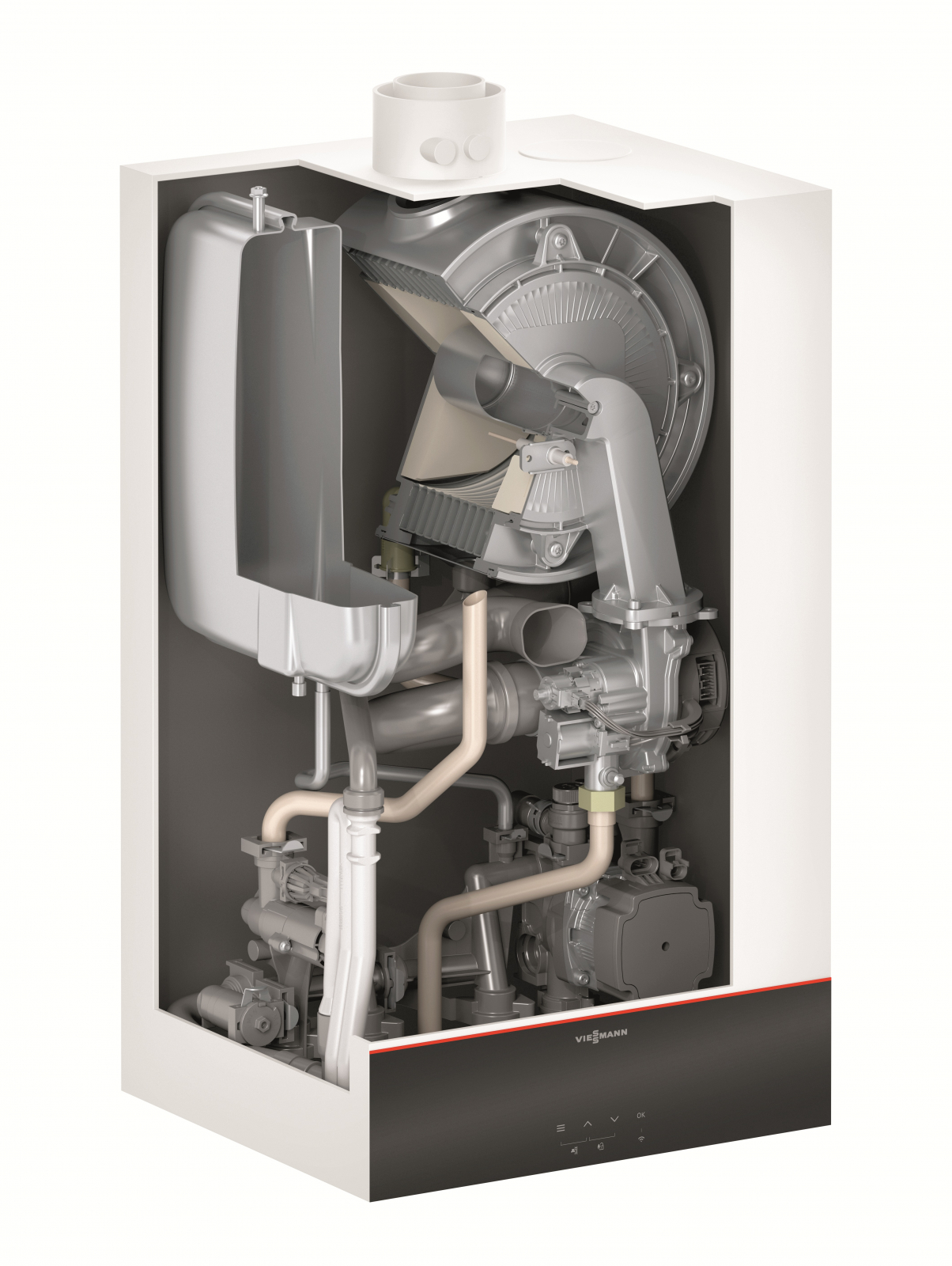 Este livrată cu pompă de înaltă eficiență, aerisitor automat, vas de expansiune de 8 litri și kit complet de instalare. Garanția standard este de 3 ani, cu posibilitate de extindere prin partenerii autorizați Viessmann.