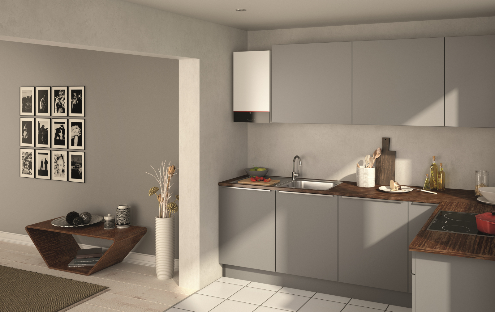 Funcționează silențios, se montează ușor în spații mici (are o adâncime de doar 360 mm) și poate fi controlată de la distanță cu aplicația ViCare, compatibilă cu smart home. Astfel, poți seta temperatura sau porni centrala chiar și când ești plecat, direct de pe telefonul tău.