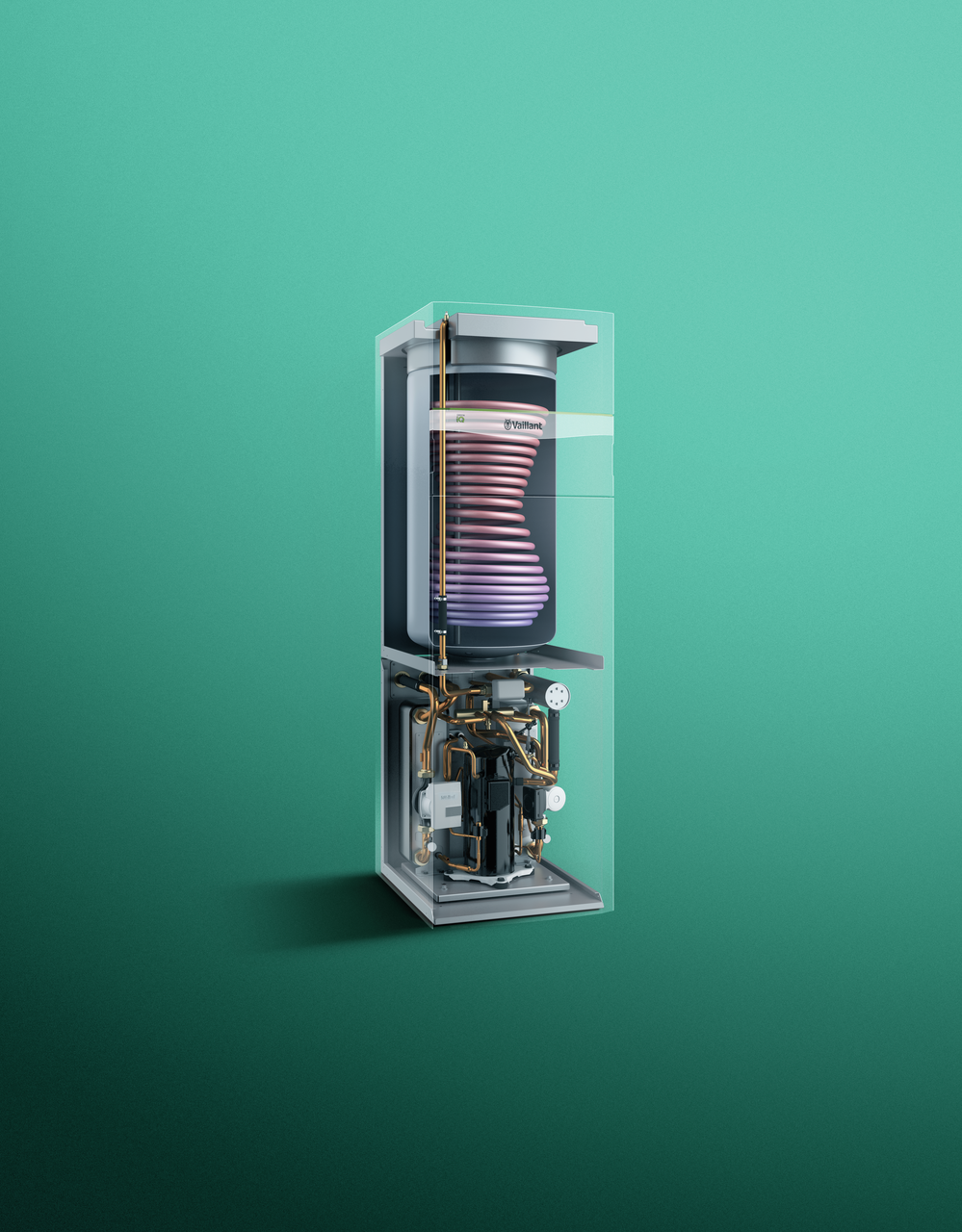 Boilerul de 171 litri este integrat direct în carcasă, având pierderi minime de căldură și compatibilitate completă cu panouri solare sau PV.